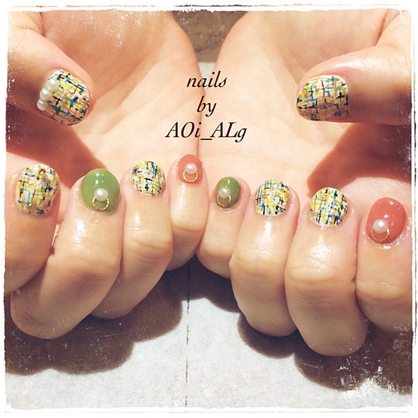 (nail) 秋カラーのツイードデザイン