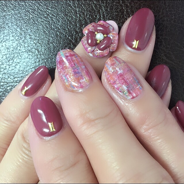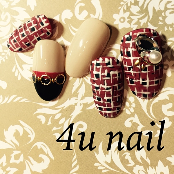 (nail)赤系カラーのツイードデザイン