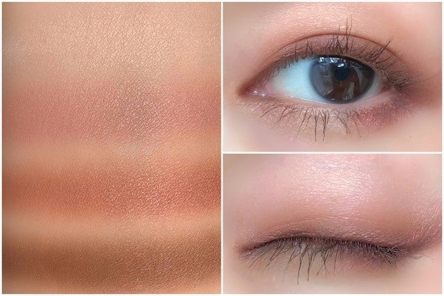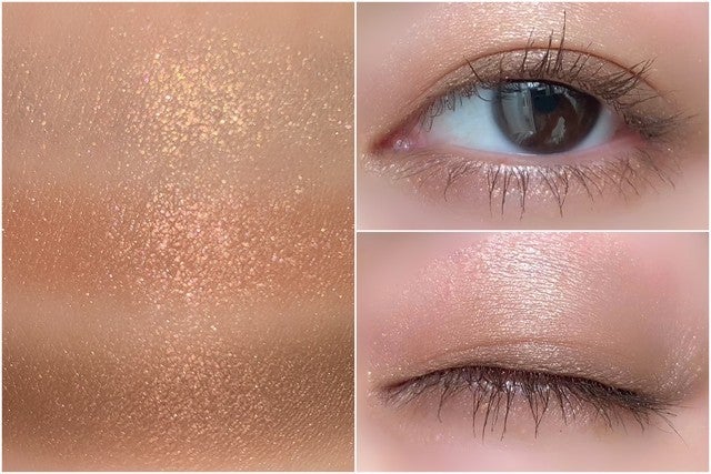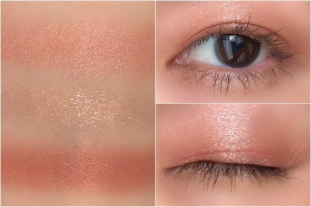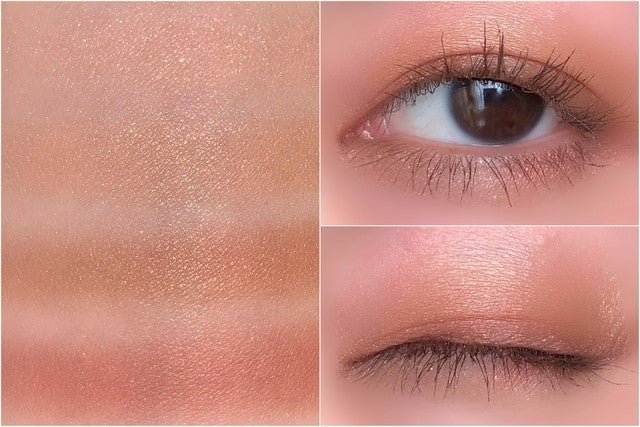 非常に発色が良く、粉飛びもしにくいのでとにかく優秀!特に左下のラメが可愛く、マスクをしていても目元を華やかに仕上げてくれますよ。