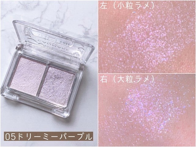 色はほぼ付かず、大きさの異なる2種類のラメを堪能できます。手持ちのアイシャドウの仕上げに使うと、アイメイクがより華やかに♡