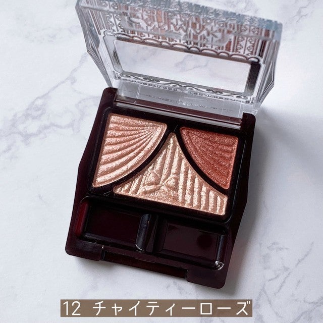 特に『12チャイティーローズ』は目元にラメの華やかさと血色感をプラスしてくれます。顔色が悪く見えがちなマスクメイクにおすすめのカラーです。