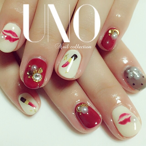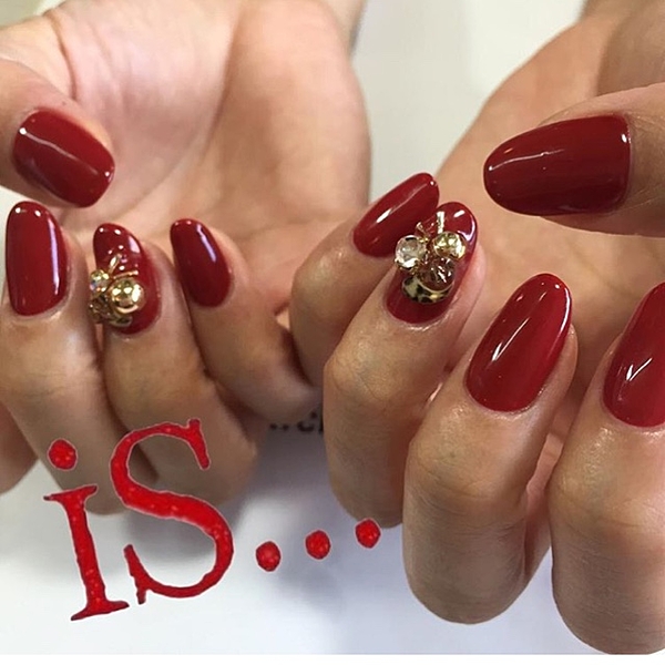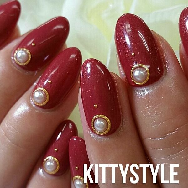 レッドの上品で大人っぽいカラーにパールをプラスするとより魅力的な手元になれちゃう◎
