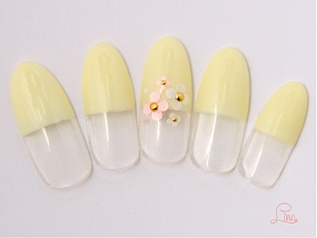 イエローのバイカラーに模様やお花を施して