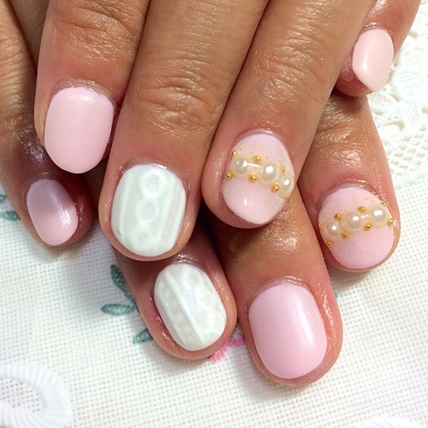 ニットじゃない爪には大きなパールを。