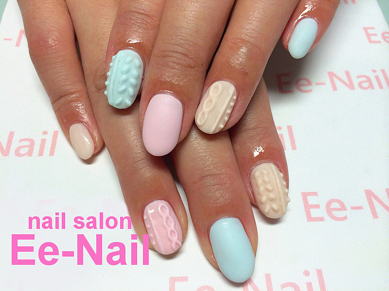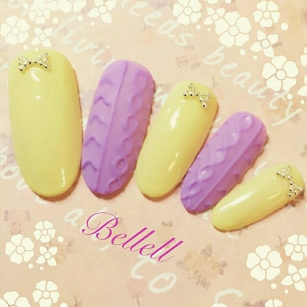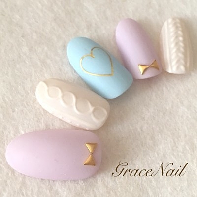 カラフルなニットネイルにハートをプラス。