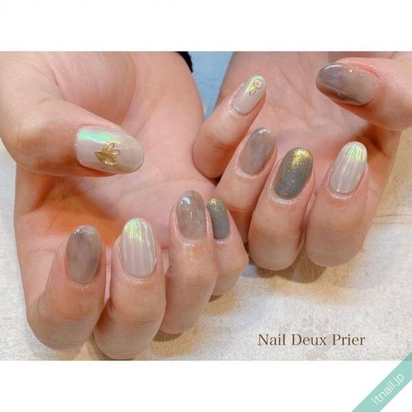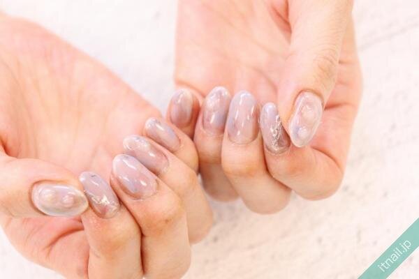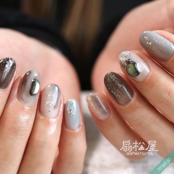 透明感のある淡いグレーネイルは、ニュアンスネイルもしやすいのでトレンド感を意識したい方にもおすすめです。ラメやオーロラなど、キラキラ感のあるデザインと組み合わせれば、幻想的な指先が楽しめるでしょう。