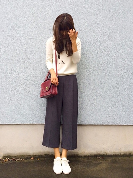 ニット×トレンドのガウチョ。