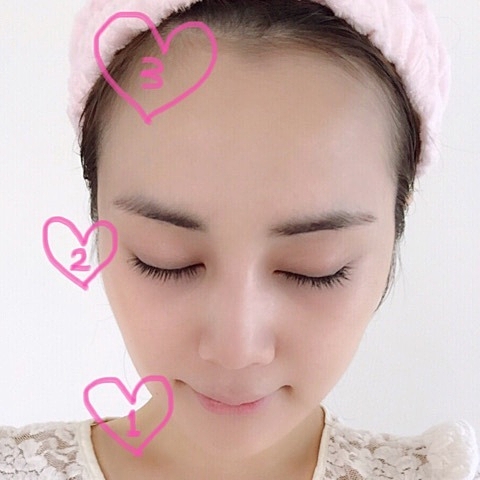 4. 眉下のくぼみ→こめかみ、額の中心→こめかみへと優しくマッサージする。