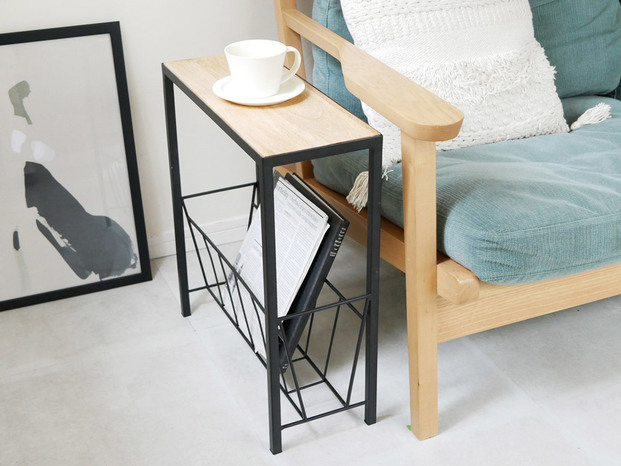 雑誌や新聞を収納できるスタイリッシュなマガジンラックです。ウッディのナチュラルな素材が部屋に合い、ブラックのアイアンバーがスマートな魅力を引き出します。