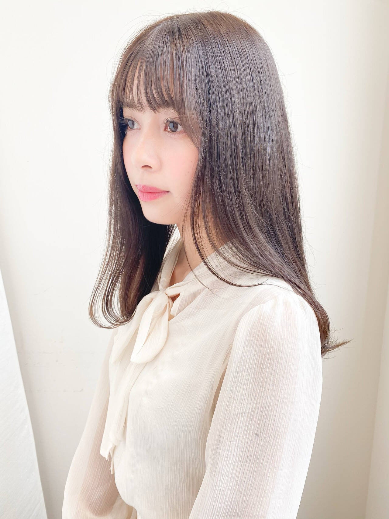ナチュラルな発色なのに、透明感抜群のグレーアッシュ。アッシュ系カラーは日本人の髪の赤みを除いてくれるので、ツヤツヤの美髪になれます。