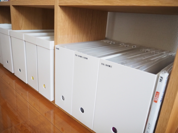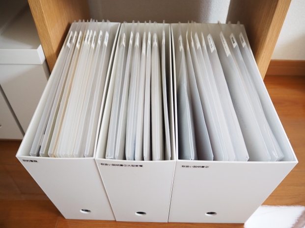 取扱説明書や契約書などは保管しておきたいけれど、見る頻度も少ないものなのでファイルボックス収納がおススメ。