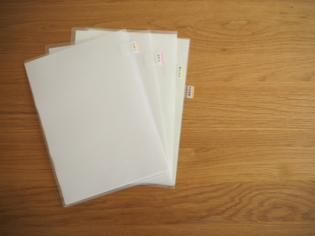 近々手続きが必要な書類、予定が終わったら処分するような書類はクリアファイルに保管します。