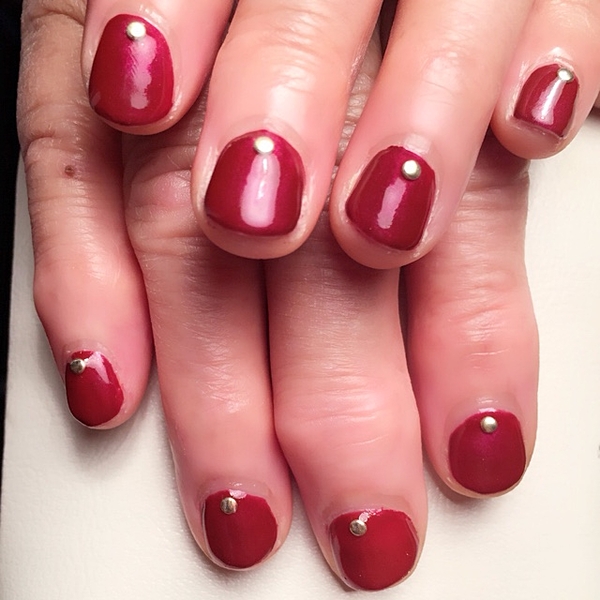 ボルドーの1色塗りでベースはシンプルに