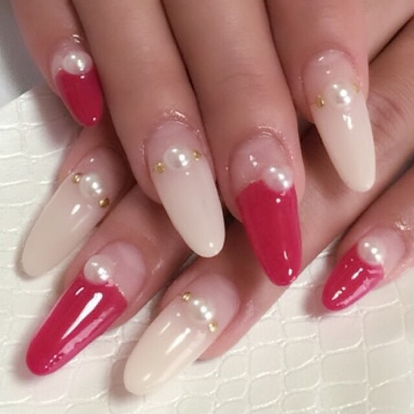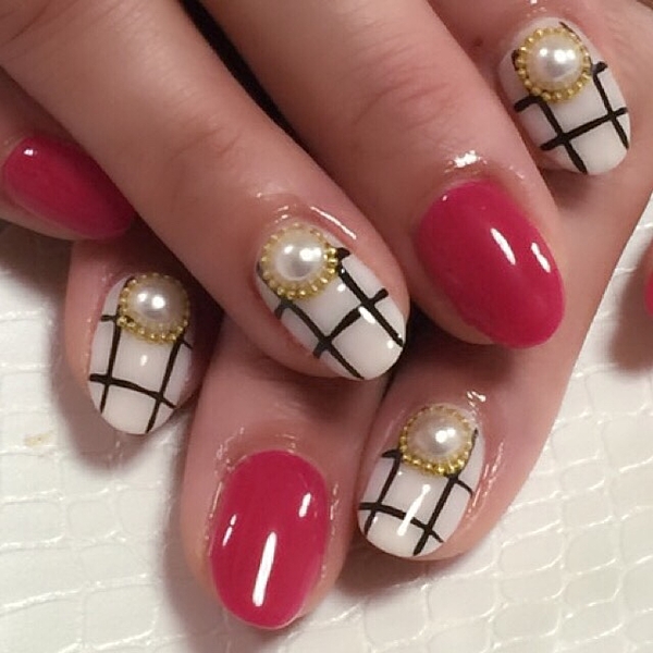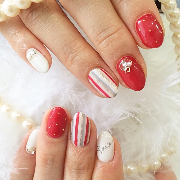 赤、ピンク、ホワイトでまとめたガーリーネイル