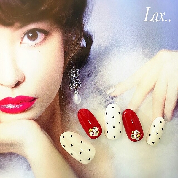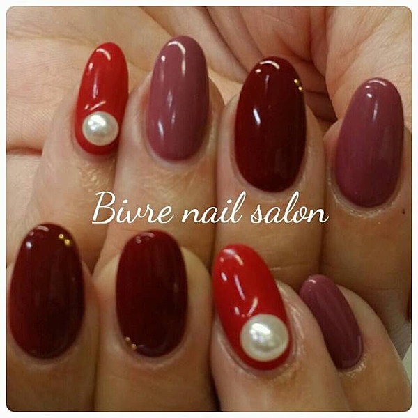 赤に合わせてパールをのせれば、クラシカルな上品ネイルに・・♪