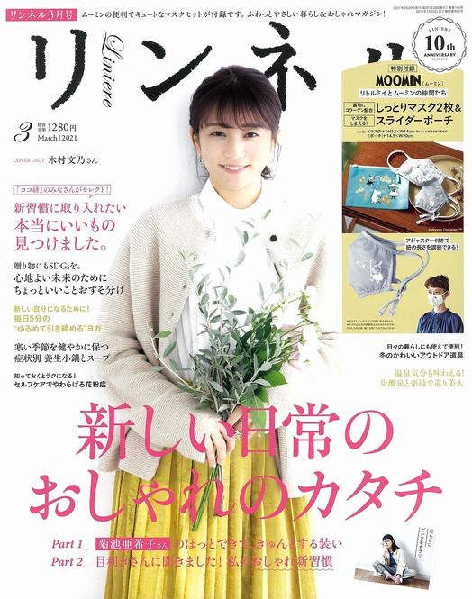 リンネル3月号の付録は、MOOMIN(ムーミン)とのコラボレーション。