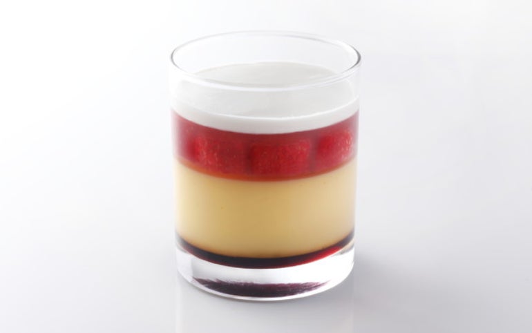 クリーム・プリン・カラメルの調和が心地よい滑らか食感のプリンに「博多あまおう(R)」の甘みを閉じ込めた層をプラスした期間限定の「あまおうプリン」。ライチはちみつのジュレが隠し味となっている。