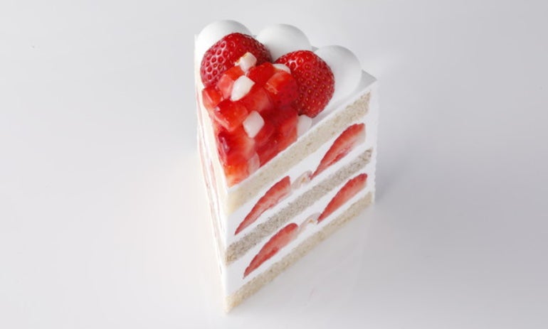 「新エクストラスーパーあまおうショートケーキ」には、厳選した福岡県産「博多あまおう(R)」が1ピースあたり約8粒入っている。スポンジには玄米卵を使った生地と、ホテルオリジナルの国産雑穀米「Jシリアル」入りの、2種類の生地を使用。さらにアーモンドミルクと和三盆糖を入れコクを出した生クリームを合わせ、仕上げにライチとブロンドチョコレートで風味をプラスするなど、素材にこだわり抜いた究極のショートケーキとなっている。