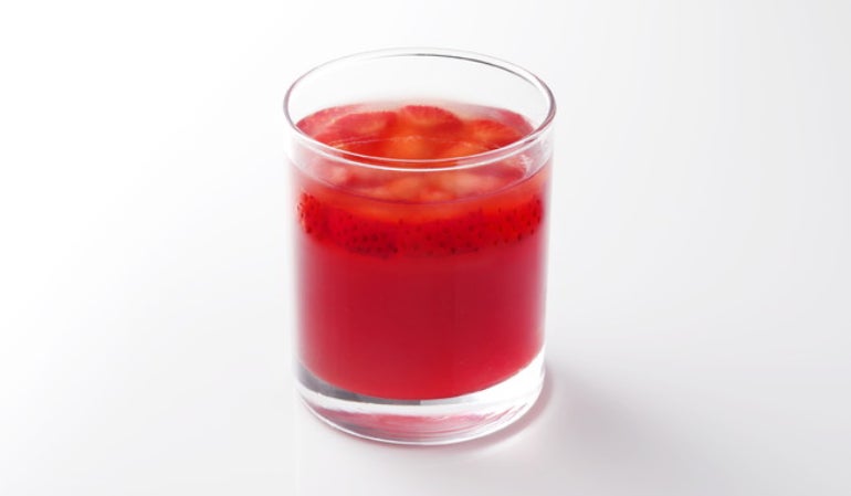 「博多あまおう(R)」の甘みをギュッと濃縮したジューシーな「あまおうゼリー」は、果肉と葛の食感がアクセントに。