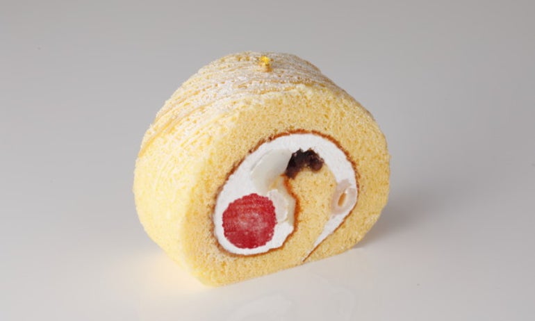 こだわりのスポンジで、生クリームやあまおう、黒蜜あんこなどをふんわりと包み込んだ「新あまおうロール」は、隠し味のブロンドチョコレートがアクセント。