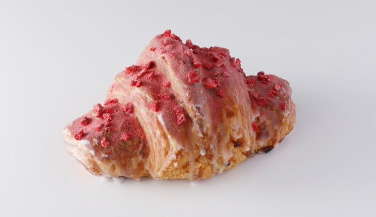 「博多あまおう(R)」を贅沢に5個分使用した濃厚なジュレを2層の生地でロールし、仕上げにあまおうのフリーズドライをトッピング。「あまおうクロワッサン」は、まるで生のあまおうを食べているかのような、新感覚のスイーツといえるだろう。