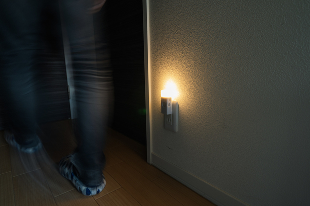 正面と両側面にある丸いセンサー部分で「暗さ・人」を察知して、ライトがつく仕組みです。