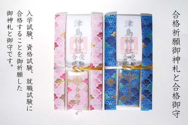 津島神社では、お守りメーカーとコラボした「キティお守り」・「トーマスお守り」・「ランドセルお守り」や合格お守り、恋愛成就お守りまど約50種類を取り揃えている。