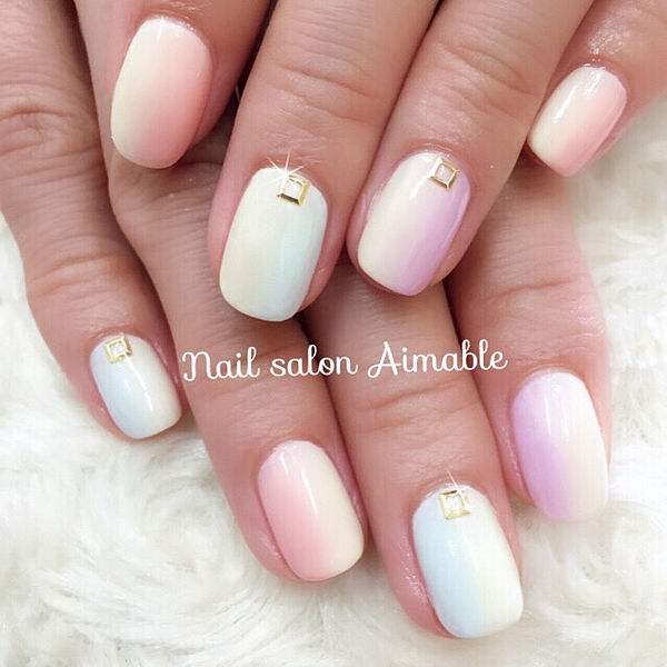 アイボリーの1色塗りに、ピンクとブルーの縦グラデを入れたデザイン