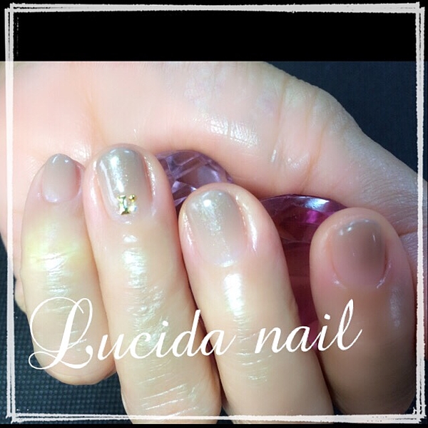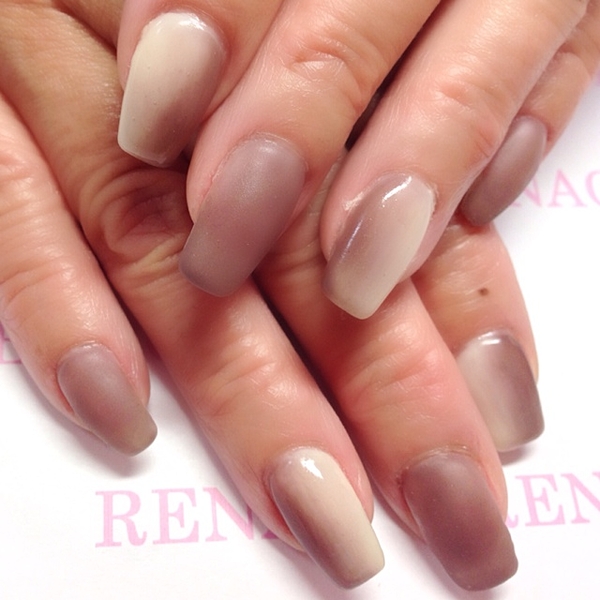 ベージュやパープルの淡いカラーで、深めのグラデーション