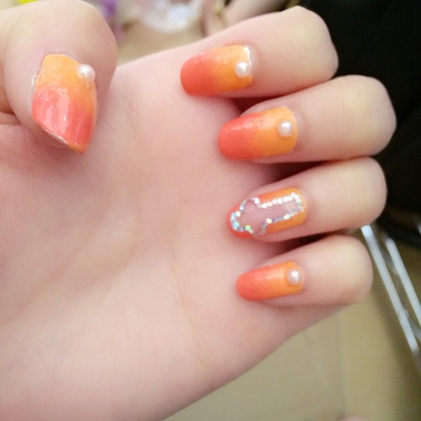 コーラルピンクのグラデーションにしたかわいいデザイン
