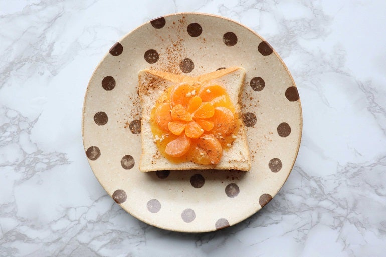 ジャムは、みかんの果肉ごとスライスしジューシーさをそのまま閉じ込め、香り豊かな仕上がりに。「生」食パンと絶妙にマッチするよう作られている。ジャムを塗った上に果物やナッツなどをのせてアレンジするのがおすすめなのだそう。