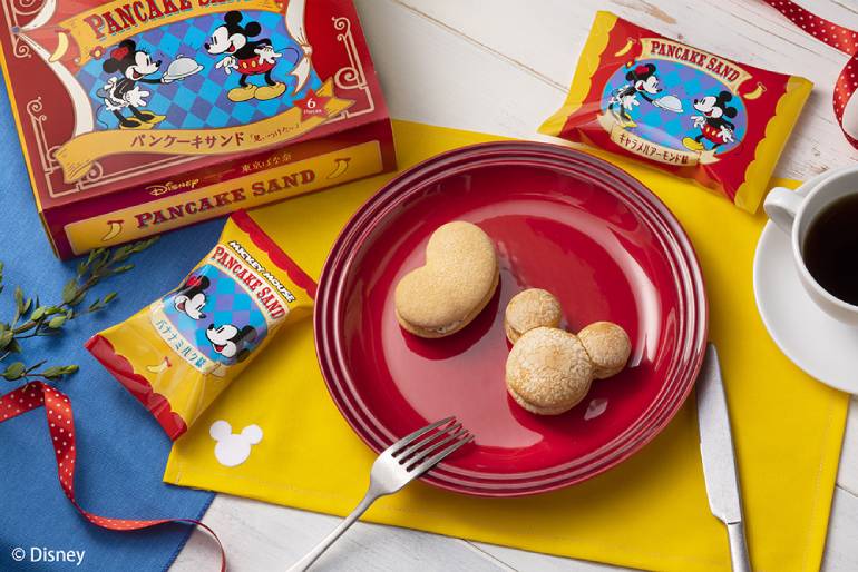 ミッキーフェイスデザインはキャラメル香るパンケーキに、ローストアーモンドを刻み入れたキャラメルクリームをはさんだ“香ばしナッツのキャラメル味”。東京ばな奈デザインはプレーンな優しさのパンケーキに、ゴロゴロチョコチップが楽しいバナナミルク香るクリームをはさんだ“チョコチップインのバナナミルク味”だ。