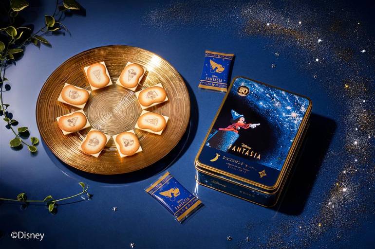 ディズニー映画『ファンタジア』公開80周年を記念したスペシャルスイーツの第1弾として登場した『ディズニー ファンタジア/ショコラサンド「見ぃつけたっ」』。作品のなかで魔法使いの弟子を演じるミッキーマウスの姿が、缶にもデザインされており、食べ終わった後も楽しめるスペシャルスイーツだ。
