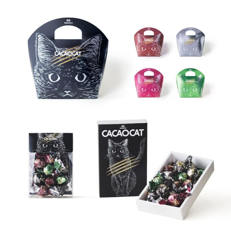「自由でわがままな猫さえも虜にしてしまうおいしさ」というブランドイメージを表現するため、パッケージやチョコレートには猫の爪あとが刻まれている。猫のアートワークは切り絵作家の魚谷 彩氏が担当。プレゼントや手土産にも最適なデザインで、猫好きにはたまらないだろう。