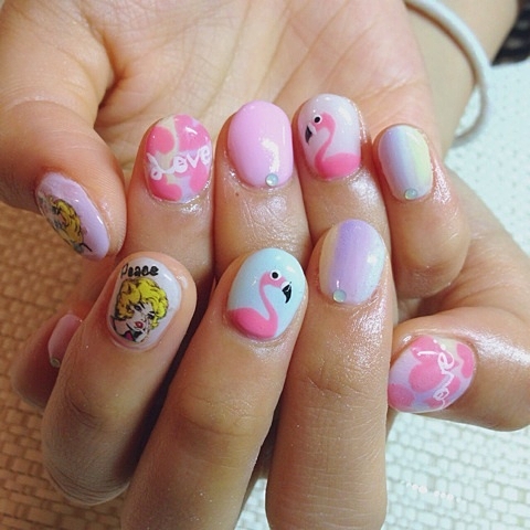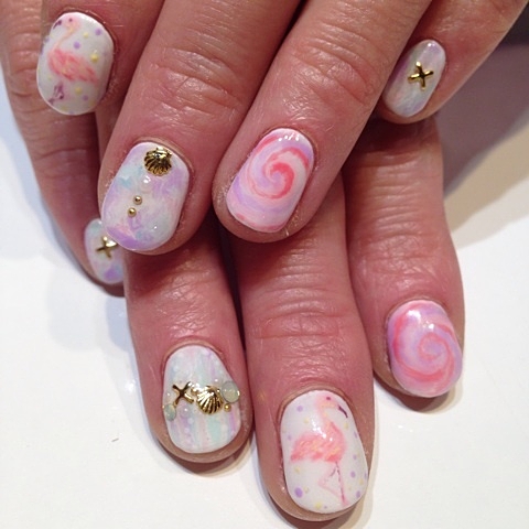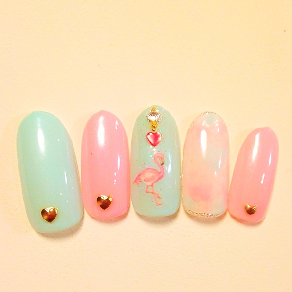 パステルカラーverのフラミンゴネイルも