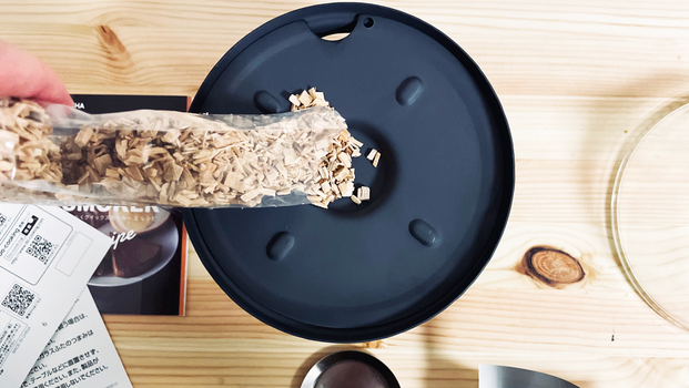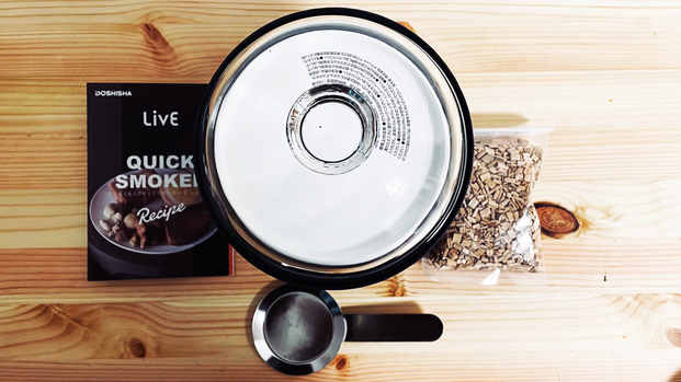 付属品はこんな感じ。燻製チップとレシピが付いていて、初心者にも優しいセットになっている。