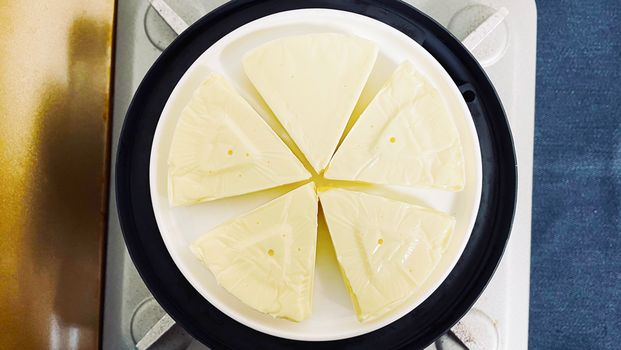 付属のお皿と具材を置く。今回は6ピースチーズをチョイス。