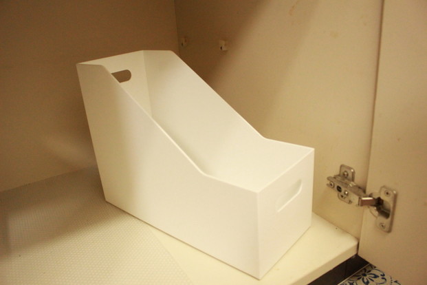 今までは、100円ショップの棚やファイルボックスで空間を区切って使っていたのですが、奥行き・高さがあるメリットを活かせず無駄な空間がありました。