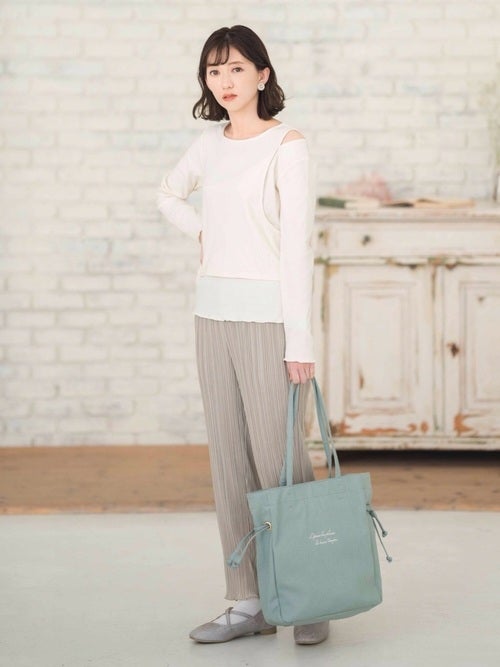 合わせるトップスもティアードシルエットで女性らしいやわらかさを引き出してくれています。
