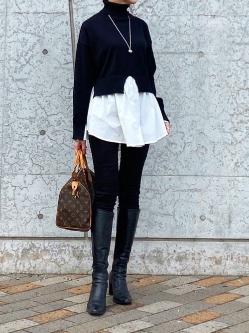 ユニクロの黒スキニーにロングブーツを合わせてスタイルアップまで叶えちゃいましょう。