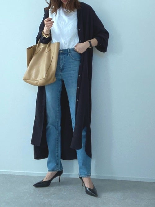 ストンと落ちる形なので、仕事日などきれいめに見せたいときにも使える高見えアイテムですよ。