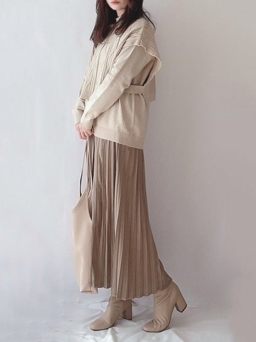 地味見えしやすいワントーンコーデですが、GUのプリーツスカートを使っていることで華やかさのある着こなしになっています。