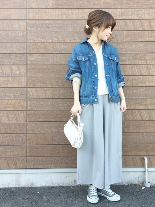 Gジャン×グレーワイドパンツの春の着こなし