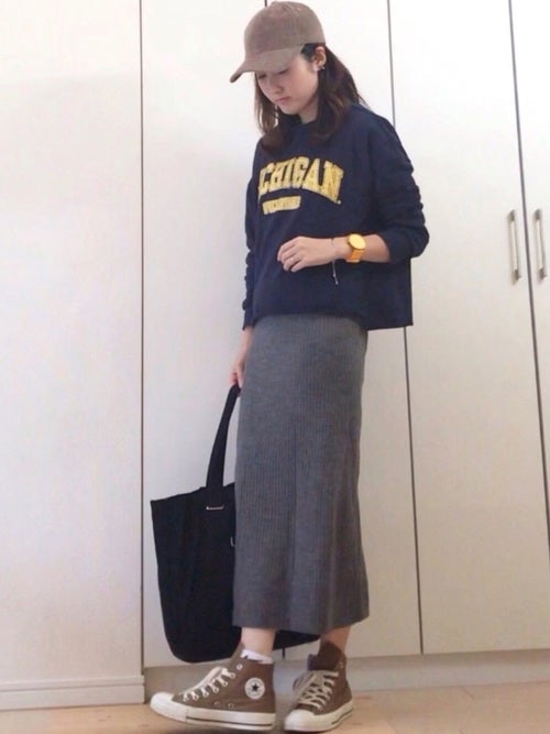 ロゴトップス×リブタイトスカートの春コーデ
