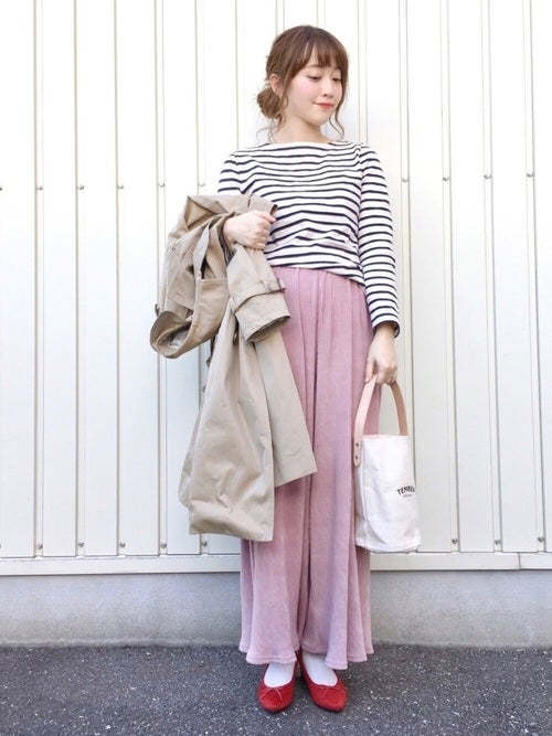 ボーダートップス×ピンクパンツの春コーデ