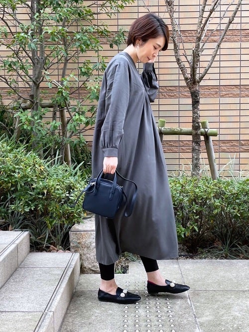 カーキワンピース×黒レギンスの春コーデ