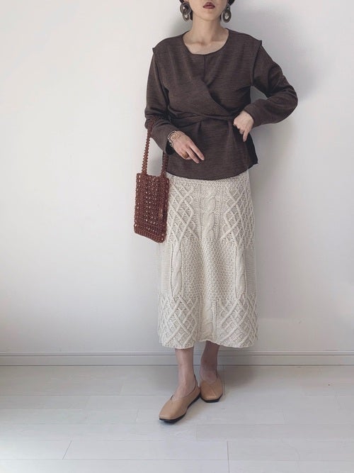 カシュクールトップス×ニットスカートコーデ