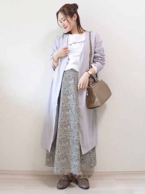 グレーコート×レオパード柄スカートの春コーデ