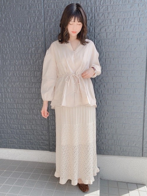 ベージュブラウス×レーススカートの春コーデ