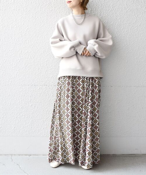 ちょっぴりエスニック感のあるスカートは、スウェットを合わせてこなれ感を出すのが◎!